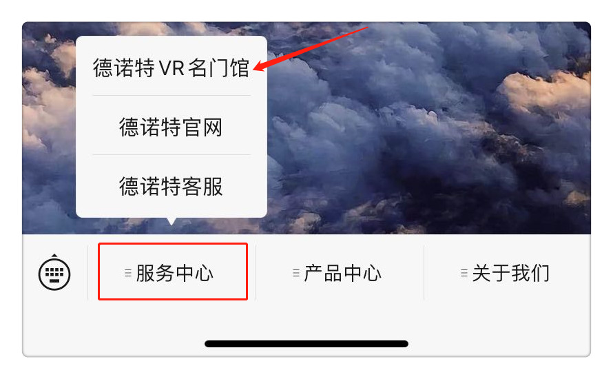 进入“德诺特高端安全门”公众号,点击底部“服务中心”——“德诺特VR名门馆”子菜单,即可体验德诺特总部VR全景名门馆
