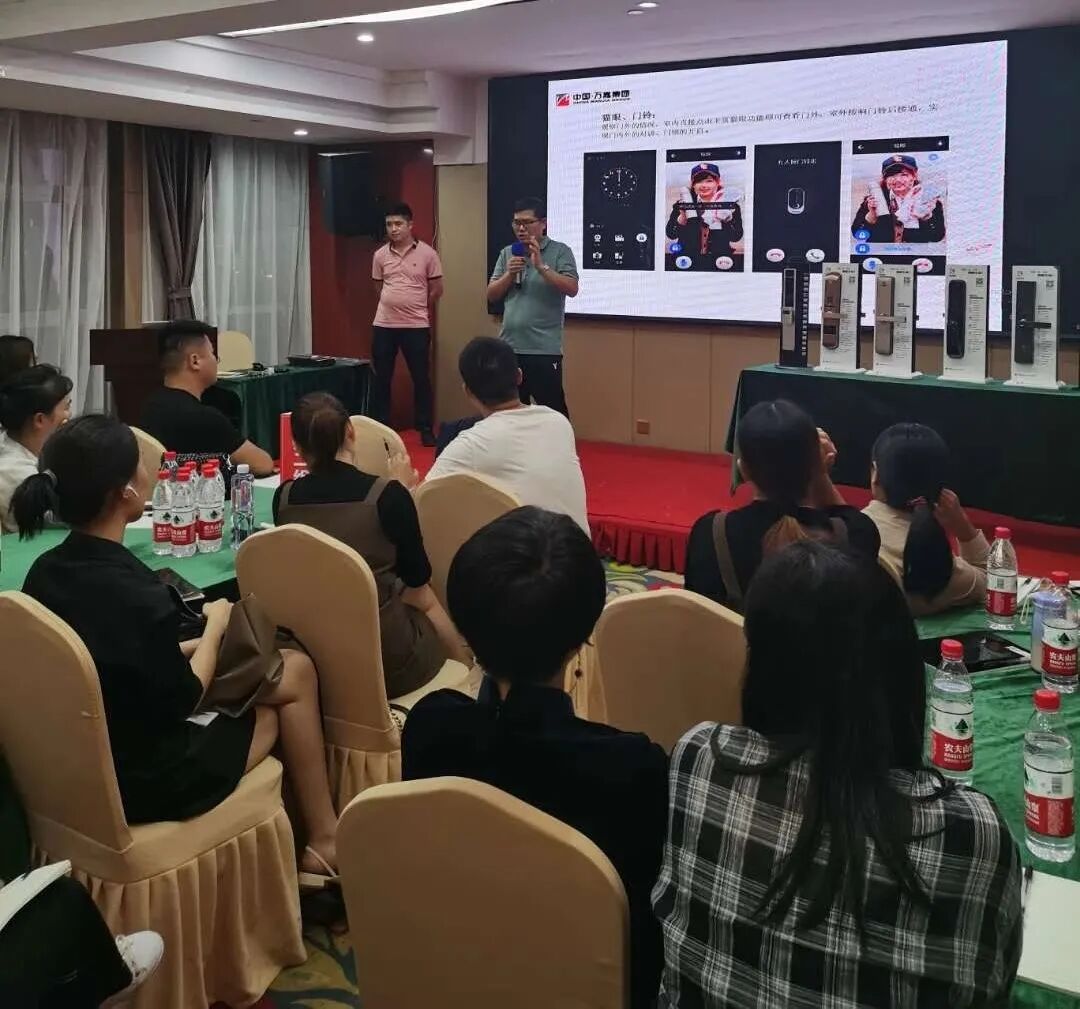 售后服务能力是门店运营的重要一环,智能锁是门锁中密不可分的一部分。培训第一课,万嘉集团产品总监戴新辉和客服部售后工程师彭勇通过实操+解说的方式,就学员们日常经营中常见的售后问题以及指纹锁的性能、优点、注意事项等方面进行详细解释,帮助销售精英们进一步提升售后能力和指纹锁专业知识。