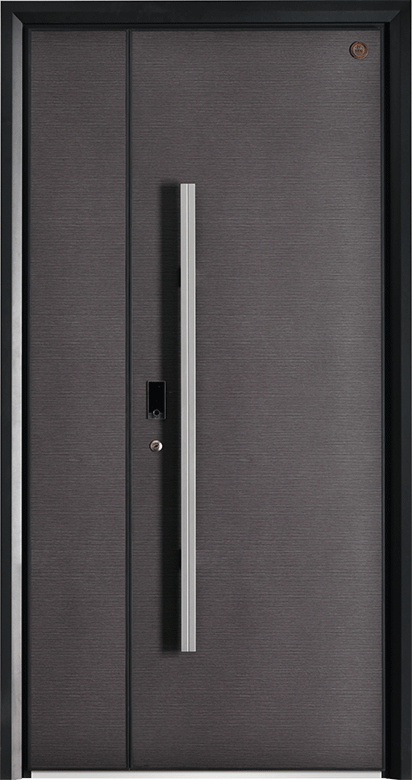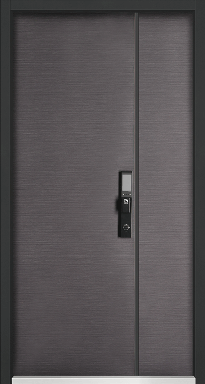 现代简约风格的对开门,核心设计为“横向细密纹理+深色调质感“体现深色调与细密纹理的结合,如墨色肌理般低调高级;呼应门板带来的沉稳安全感。